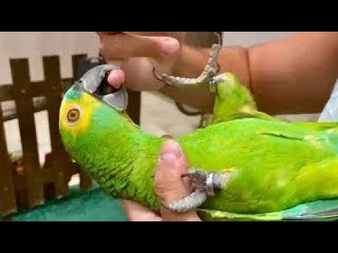 PAPAGAIO DEITADO como um CACHORRO… e depois FALA COMO HUMANO! 🦜💚 Papagaio falante e manso! Você já viu um papagaio…