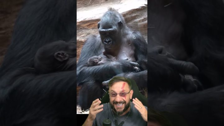 Mamãe gorila com seu filhote no colo #biologohenrique #animais #bichoesperto #biologo