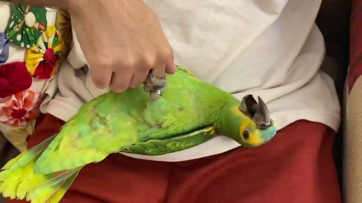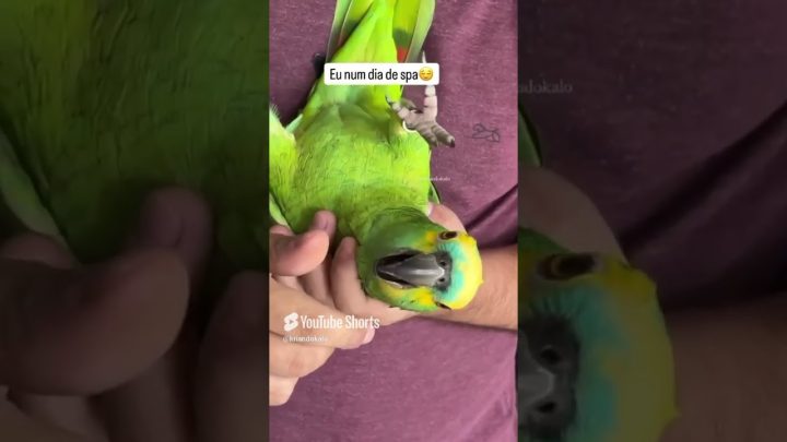 Papagaio deita igual um PET no colo do dono e brinca! 🦜💚 Fofo demais! Conheça o incrível Fred, um papagaio…