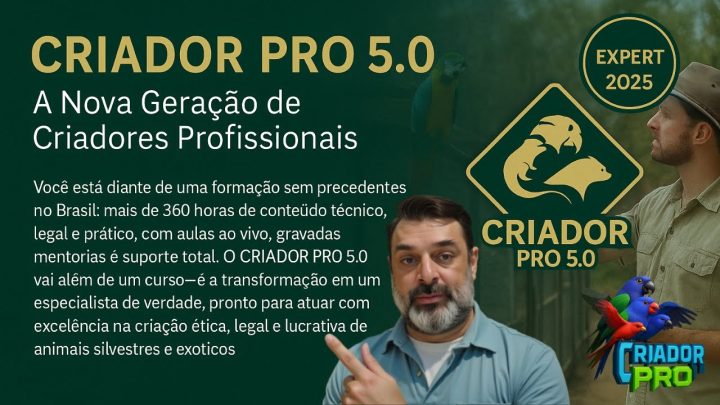🚀 CRIADOR PRO 5.0 – A Nova Formação de Especialistas em Criação Comercial de Animais Silvestres 📌 Descrição da Live:…