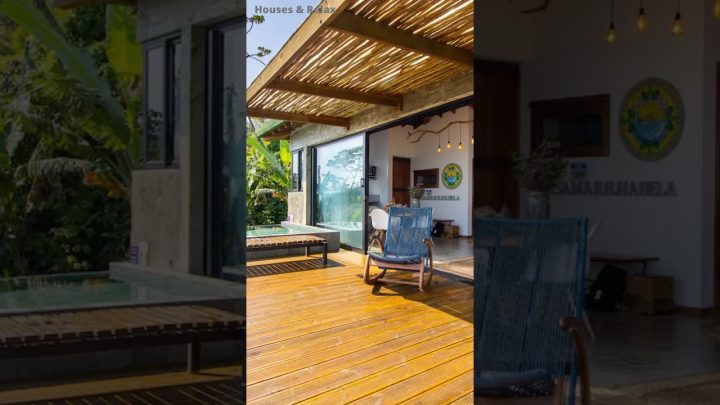 Se Inscreva @HousesRelax Casa de praia rústica, pequena e muito bonita. Deck de madeira com piscina e vista para o…