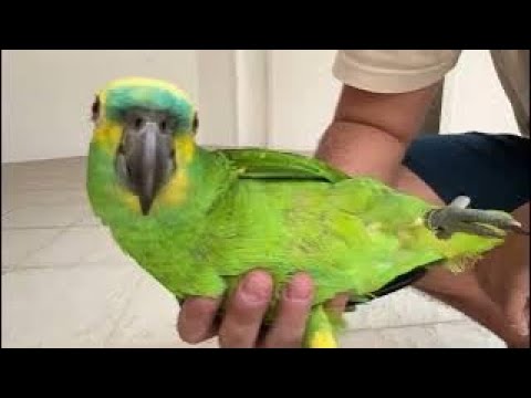 PAPAGAIO VERDADEIRO QUE MAIS PARECE UM CACHORRO DE TÃO MANSO! Conheça o incrível Fred, um papagaio que vai te surpreender…