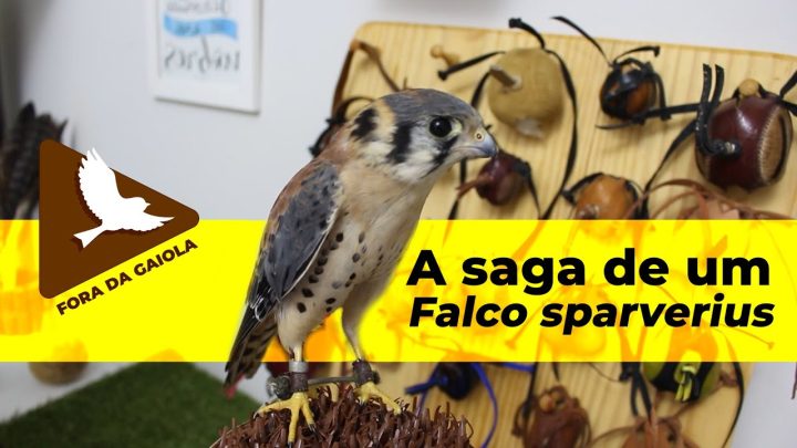Falcão. Falco sparverius, falcão-quiriquiri, falcão brasileiro, com o Biólogo Henrique